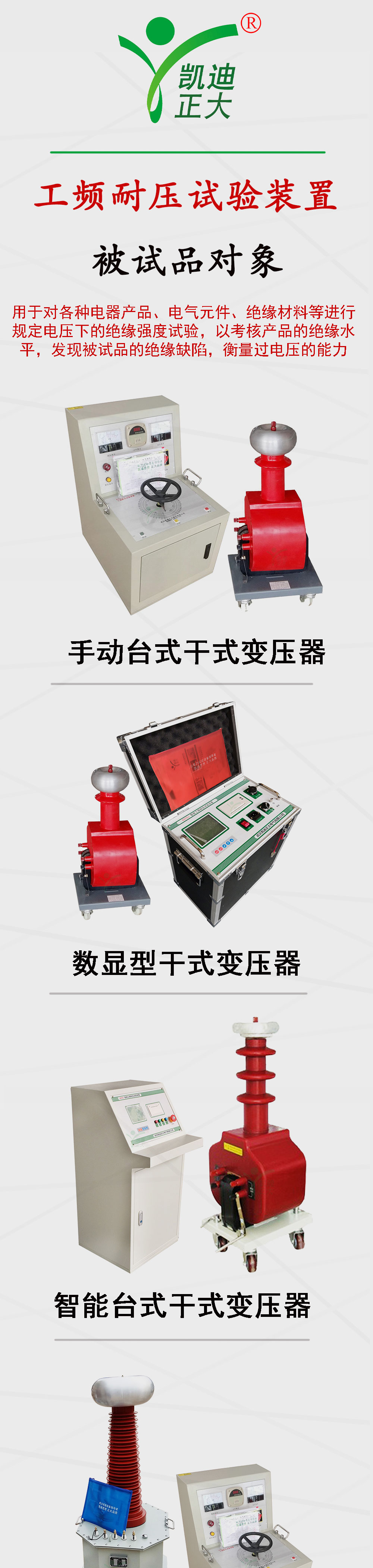 當(dāng)前位置:首頁 > 產(chǎn)品中心 > 主營產(chǎn)品 KDGTB工頻耐壓試驗(yàn)裝置是鑒定電力設(shè)備絕緣強(qiáng)度的嚴(yán)格、有效和直接的方法。它能檢查出那些危險(xiǎn)性較大的集中缺陷,對(duì)判斷電力設(shè)備能否繼續(xù)參加運(yùn)行具有決定性作用,是保證設(shè)備絕緣水平、避免發(fā)生絕緣事故的重要手段。