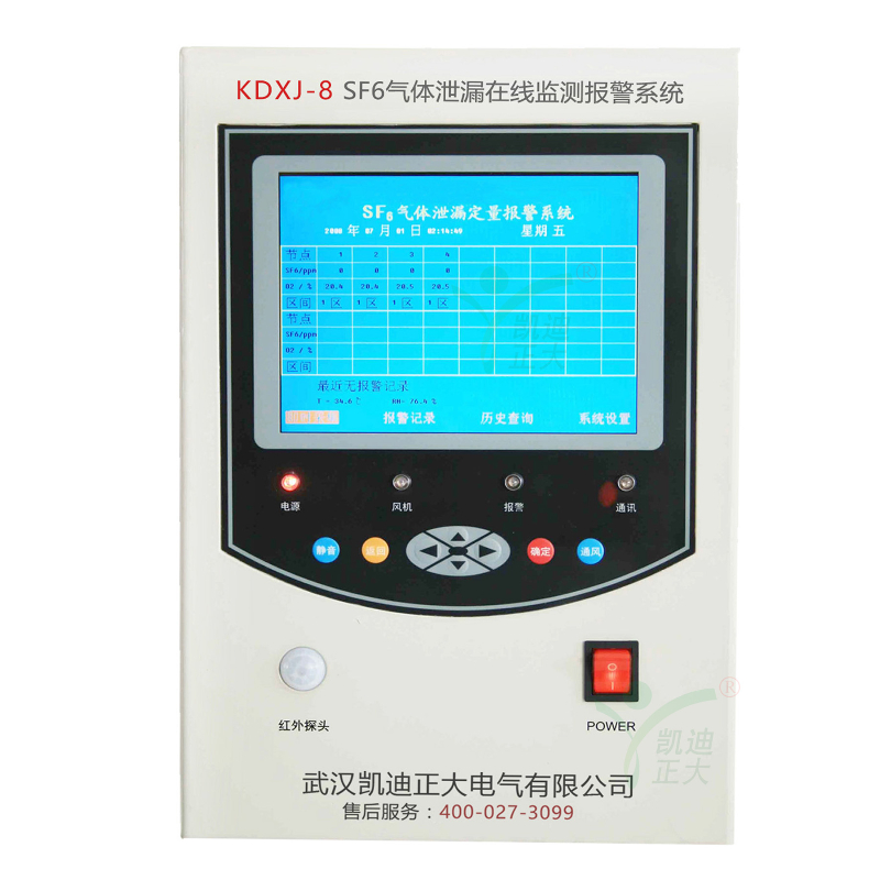 KDXJ-8 SF6氣體泄漏報警系統(tǒng)主要針對SF6氣體泄漏和缺氧狀況進行檢測,并兼有溫度、濕度等環(huán)境數(shù)據(jù)的輔助檢測功能,完全符合《電業(yè)安全工作規(guī)程》要求。