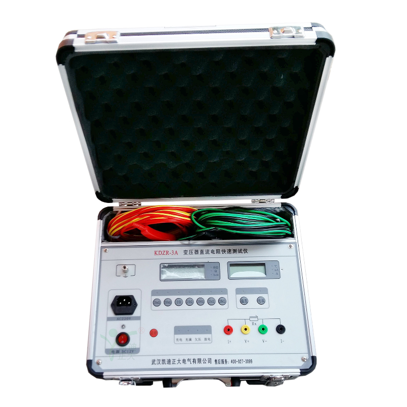 KDZR-3A直流電阻測(cè)試儀(微歐計(jì))是取代直流單、雙臂電橋的高精度換代產(chǎn)品。儀器采用了先進(jìn)的開關(guān)電源技術(shù),由四位半LCD液晶顯示測(cè)量結(jié)果。克服了其它同類產(chǎn)品由LED顯示值在陽(yáng)光下不便讀數(shù)的缺點(diǎn),同時(shí)具備了自動(dòng)消弧功能。本儀器具有測(cè)速快、精度高、顯示直觀、抗干擾能力強(qiáng)、體積小、耗電省、測(cè)試數(shù)據(jù)穩(wěn)定可靠、不受人為因素影響等優(yōu)點(diǎn)。是測(cè)量電力變壓器及大型電機(jī)等各種感性負(fù)載電阻及低壓開關(guān)接觸電阻、電線電纜或焊縫接口電阻的理想儀器,其測(cè)量速度比電橋快一百多倍。儀器內(nèi)裝可充電電池組(12V),交、直流兩用,便于現(xiàn)場(chǎng)及野外測(cè)試。