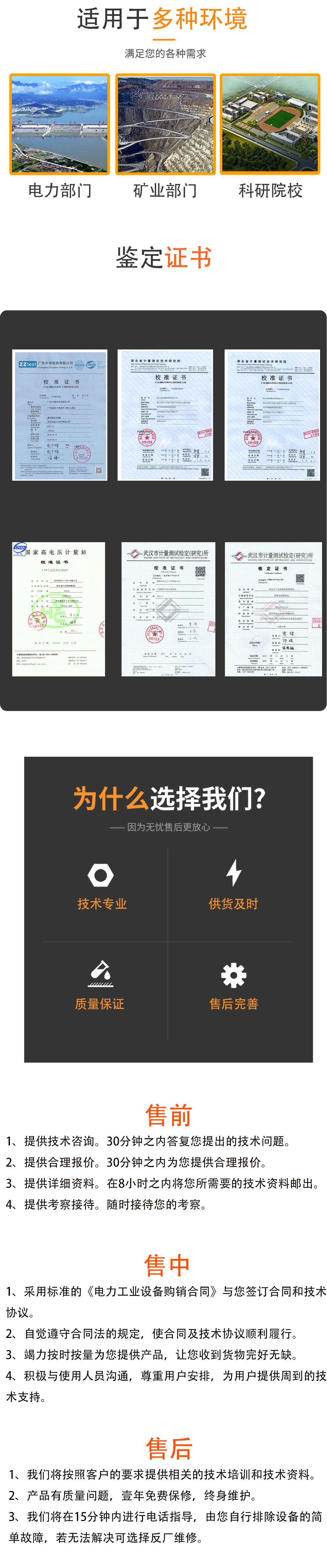 1.檢測電纜電壓等級:220V、380V、6kV、10kV、35kV、110kV、220kV