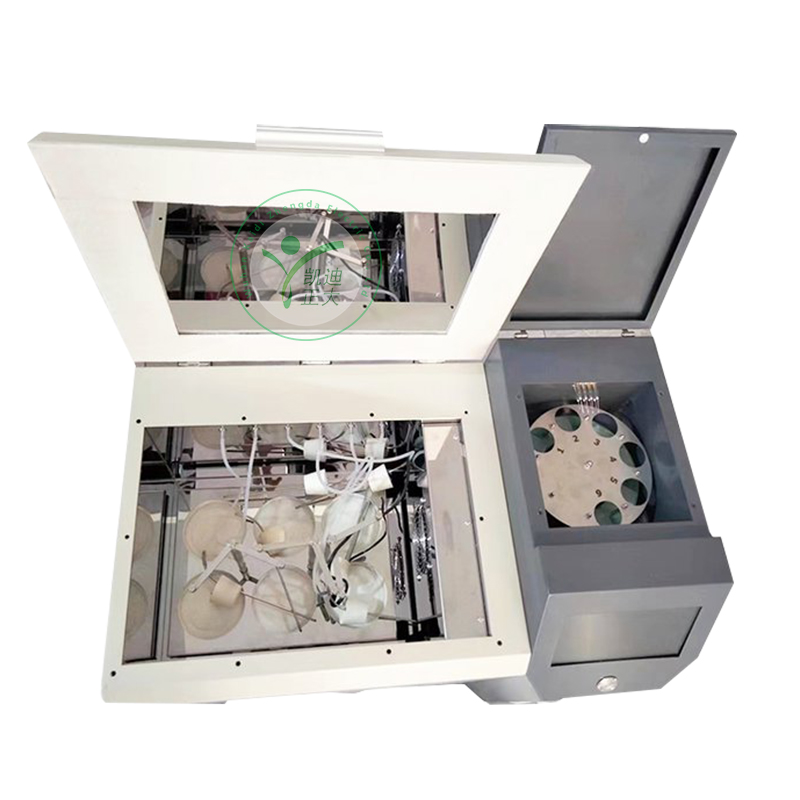 KDSR-303D全自動水溶性酸測試儀(比色法)是根據中華人民共和國國家標準GB/T7598-2008運行中變壓器油水溶性酸測試法及相關標準設計制造。采用大屏幕液晶顯示,利用微處理器控制,可以根據用戶的設定條件自動完成加熱、恒溫、振蕩、取樣、測試、清洗、打印等功能,可以一次性測量1-6個樣品,縮短了用戶的測試時間。