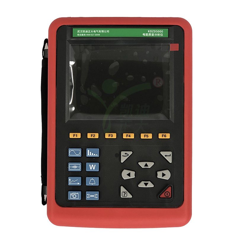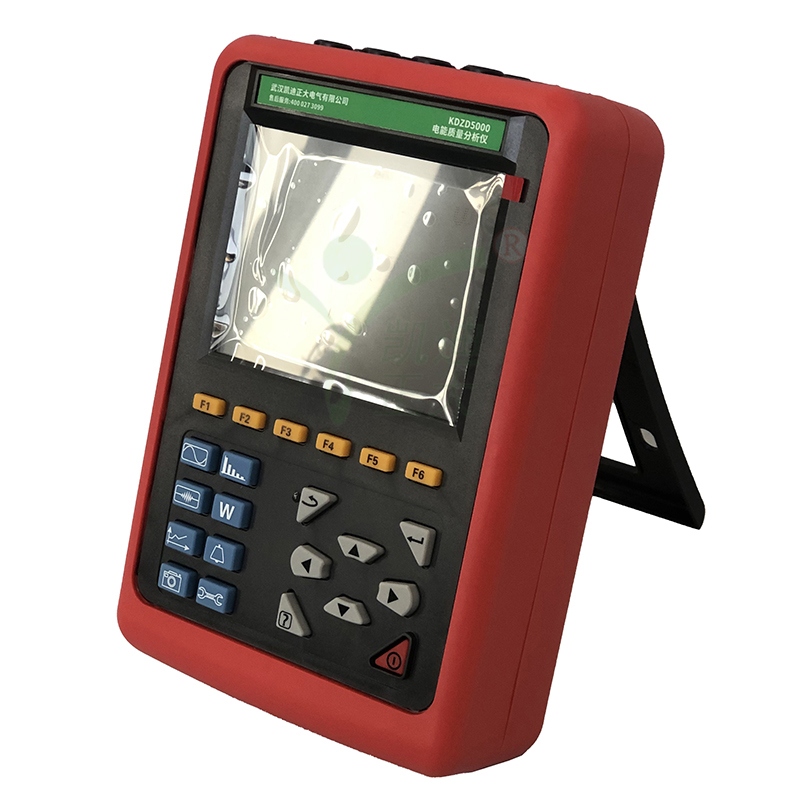 KDZD5000電能質量分析儀是我公司精心研制的現場測試的三相、多功能、智能化、人機操作簡潔的綜合型測試儀器。具有容易使用,超大液晶彩屏顯示,高分辨率,中英文雙語操作界面,防振結構外殼等特點。可同時測量4路電流(ABC三相及中性線電流),4路電壓(ABC三相電壓及中性線對地電壓)、電流電壓的峰值、一段時間內的最大最小值、三相不平衡度、短時電壓閃變、變壓器K因數、有功功率、無功功率、視在功率、功率因數、位移功率因數、有功電能、無功電能、視在電能、諧波比、總諧波失真度等;顯示電流電壓的實時波形、相量圖、諧波比柱形圖;動態捕捉電壓電流瞬時變化,監測啟動電流,監測各電力參數并生成告警列表,長時間記錄測試數據并生成趨勢曲線圖等功能。