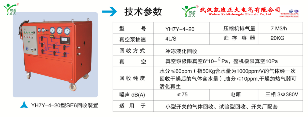 35kV及以下開關(guān)成套設(shè)備廠建議用KDQH-7Y-4-20型,壓縮機(jī)排量在7M3/h,抽氣速率4L/S采用冷凍液化回收。