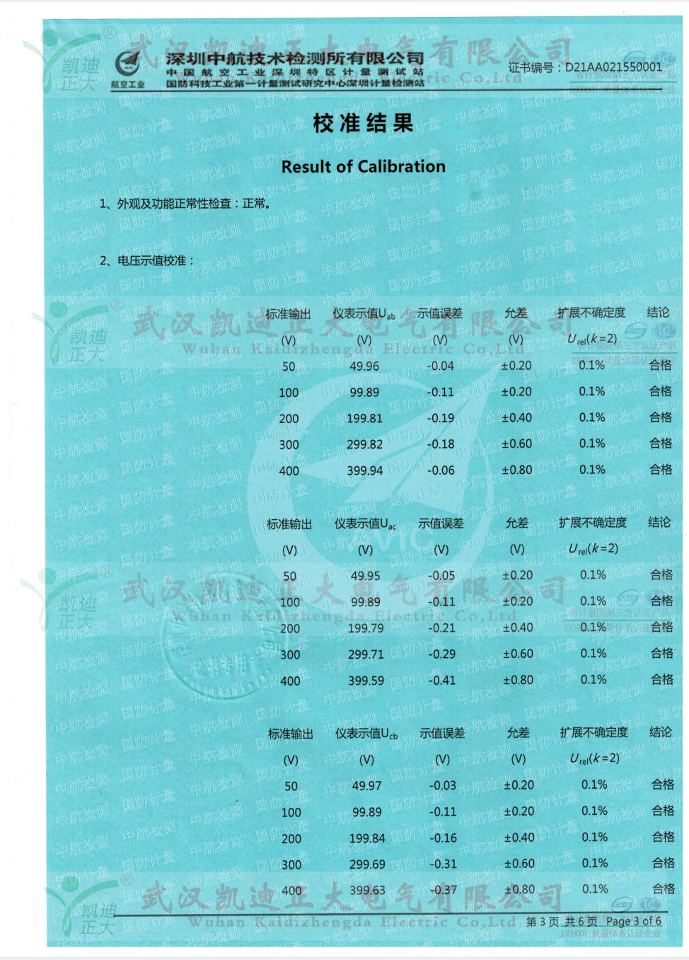 KDBR-IV變壓器容量及特性測試儀是我司老客戶天水程達電氣再次采購的,因多次為質(zhì)檢所等相關(guān)單位提供高低壓成套檢測設(shè)備,所以程達電氣對我司產(chǎn)品青睞。應(yīng)要求需要出具中國合格評定國家認可委員會(CNAS)相關(guān)單位的電壓示值校準(zhǔn)、電流示值校準(zhǔn)、功率示值校準(zhǔn)等數(shù)據(jù)。深圳中航技術(shù)檢測大多數(shù)限公司(中國航空工業(yè)深圳特區(qū)計量測試站/國防科技工業(yè)第一計量測試研究中心深圳計量檢測站 )是航空工業(yè)北京長城計量測試技術(shù)研究所、國防科技工業(yè)第一計量測試研究中心于1986年投資建立的計量技術(shù)檢測服務(wù)機構(gòu),是深圳市最早的法定計量檢測機構(gòu)之一,是具有法定計量、國防計量、軍用計量屬性的第三方公正實驗室。