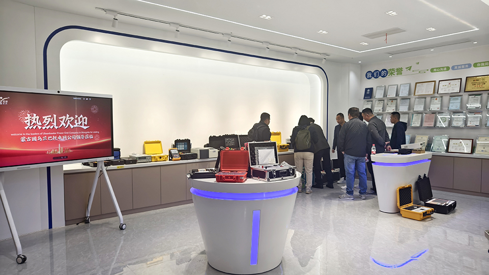上午9時,蒙古國烏蘭巴托電網公司高層領導一行準時抵達我司。在我司領導的陪同下,來賓們首先參觀了公司的高壓車間、研發車間及展廳。在生產車間,來賓們詳細了解了我司的生產工藝、產品特性;在研發中心,我司技術人員向嘉賓們展示了最新的耐壓試驗設備以及接線方式、使用方法和注意事項;在展廳,來賓們對我司的產品系列和品牌形象有了更直觀的認識。