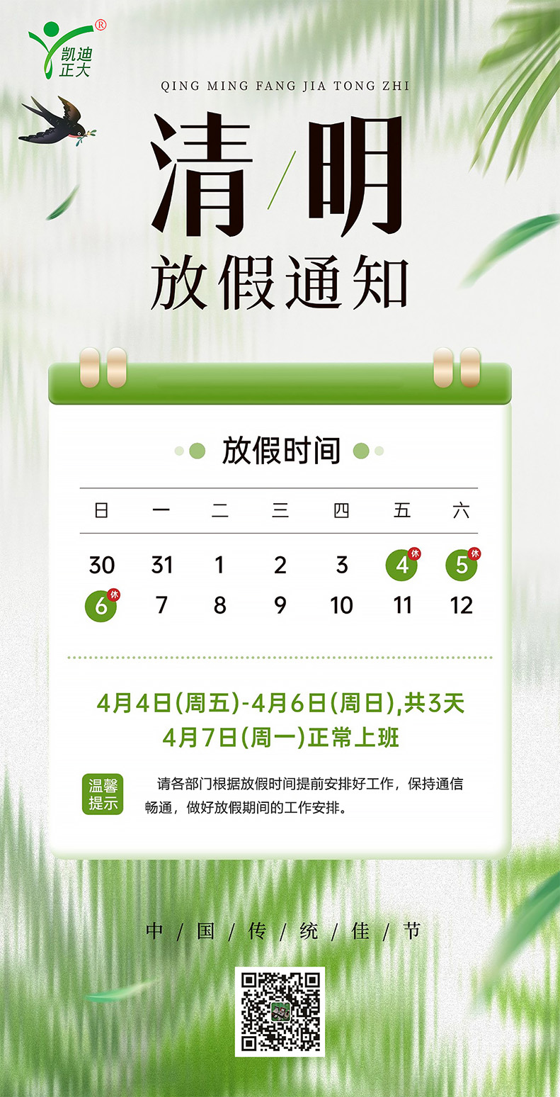 放假時(shí)間: 2025年4月4日(星期五)至4月6日(星期日),共3天。4月7日(星期一)正常上班。