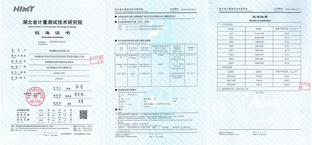兩套設(shè)備均通過精度、重復(fù)性及穩(wěn)定性測(cè)試,同步獲得校準(zhǔn)證書(證書編號(hào):2025DW049100124;2025DW049100123)。此次雙機(jī)全項(xiàng)達(dá)標(biāo)不僅印證了武漢凱迪正大產(chǎn)品的可靠品質(zhì),更彰顯了海南客戶在電力檢測(cè)裝備選型中的精準(zhǔn)判斷,為深化長(zhǎng)期合作奠定了堅(jiān)實(shí)互信基礎(chǔ)。