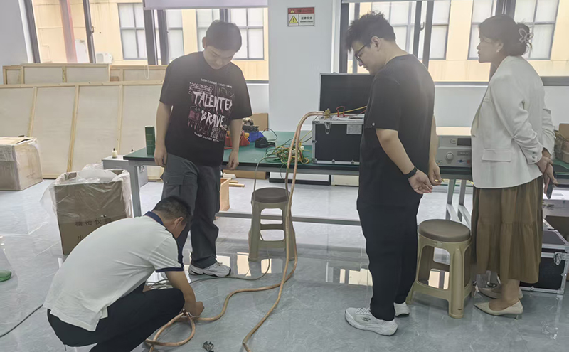 第三站:試驗區域——體驗產品效能最后一站,我們來到了產品試驗區域。技術人員向代表團演示了一場針對智能大電流發生器的操作。隨著設備啟動,運行數據平穩顯示,其工作狀態直觀地呈現在大家面前。技術人員結合演示,簡要講解了該設備在模擬真實工況、驗證產品性能方面的作用。這場簡短的“實戰演練”,旨在讓抽象的技術參數轉化為可感知的實際效能,給來賓留下更為深刻的印象。